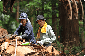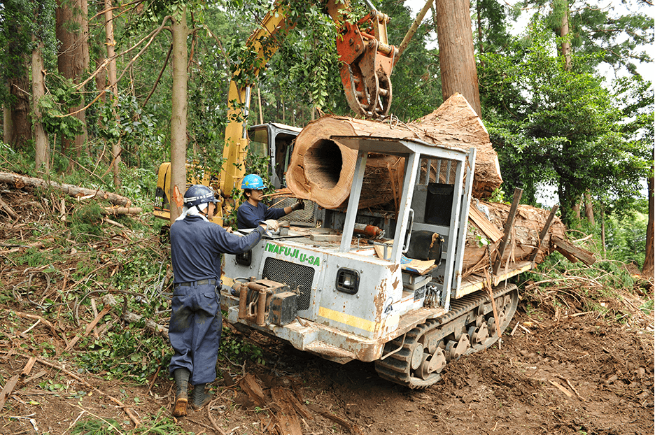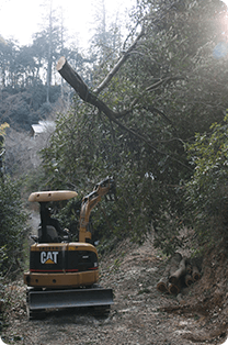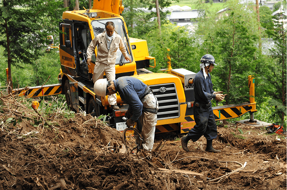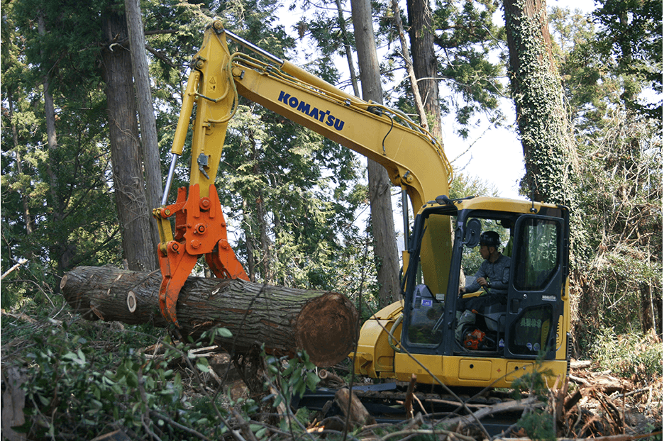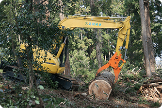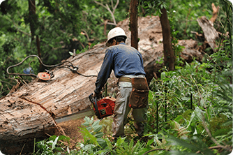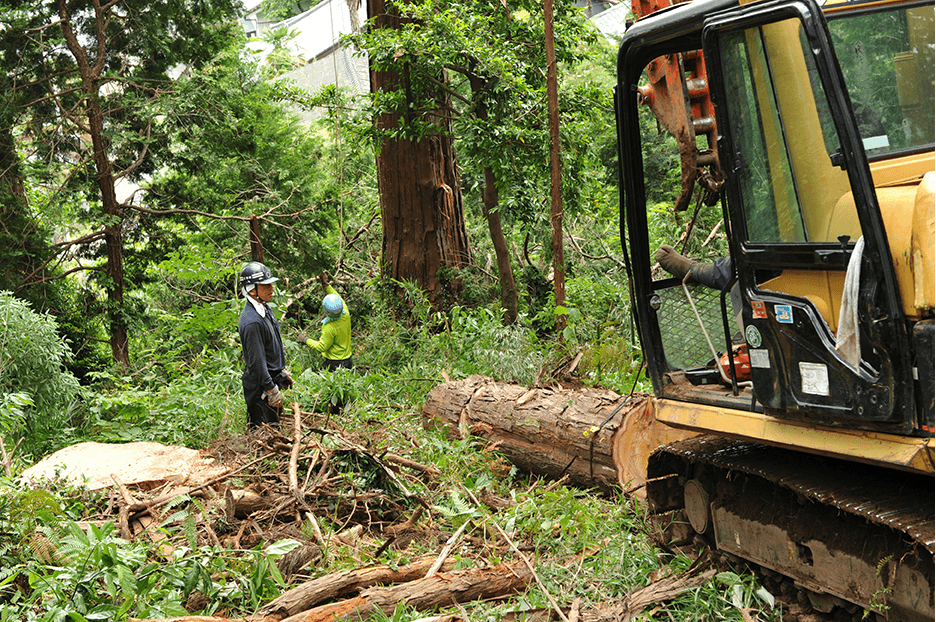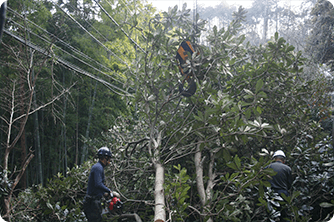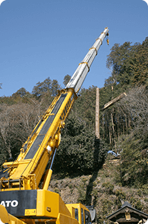 どうしても切れない難木、危険な場所の木、落雷や災害などによる倒木など、一般では手に負えない木の伐採及び撤去も対応いたします。重機の入れない場所や切り出しにくい場所でも、スタッフの知恵を合わせて対応します。
